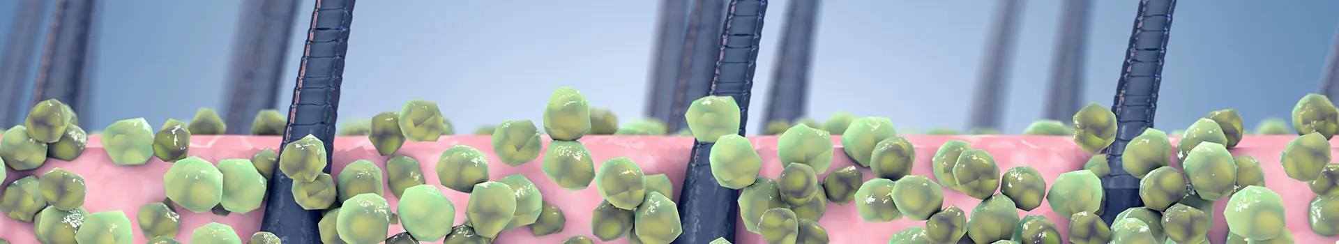 Ако започнете да търсите кои са най-честите причини за пърхот, вероятно ще попаднете на Malassezia. Какво точно е Malassezia и как можете да спечелите битката срещу пърхота ефективно? На снимката с космените фоликули на косата можете да видите гъбичката Malessezia, илюстрирана като зелени балончета.