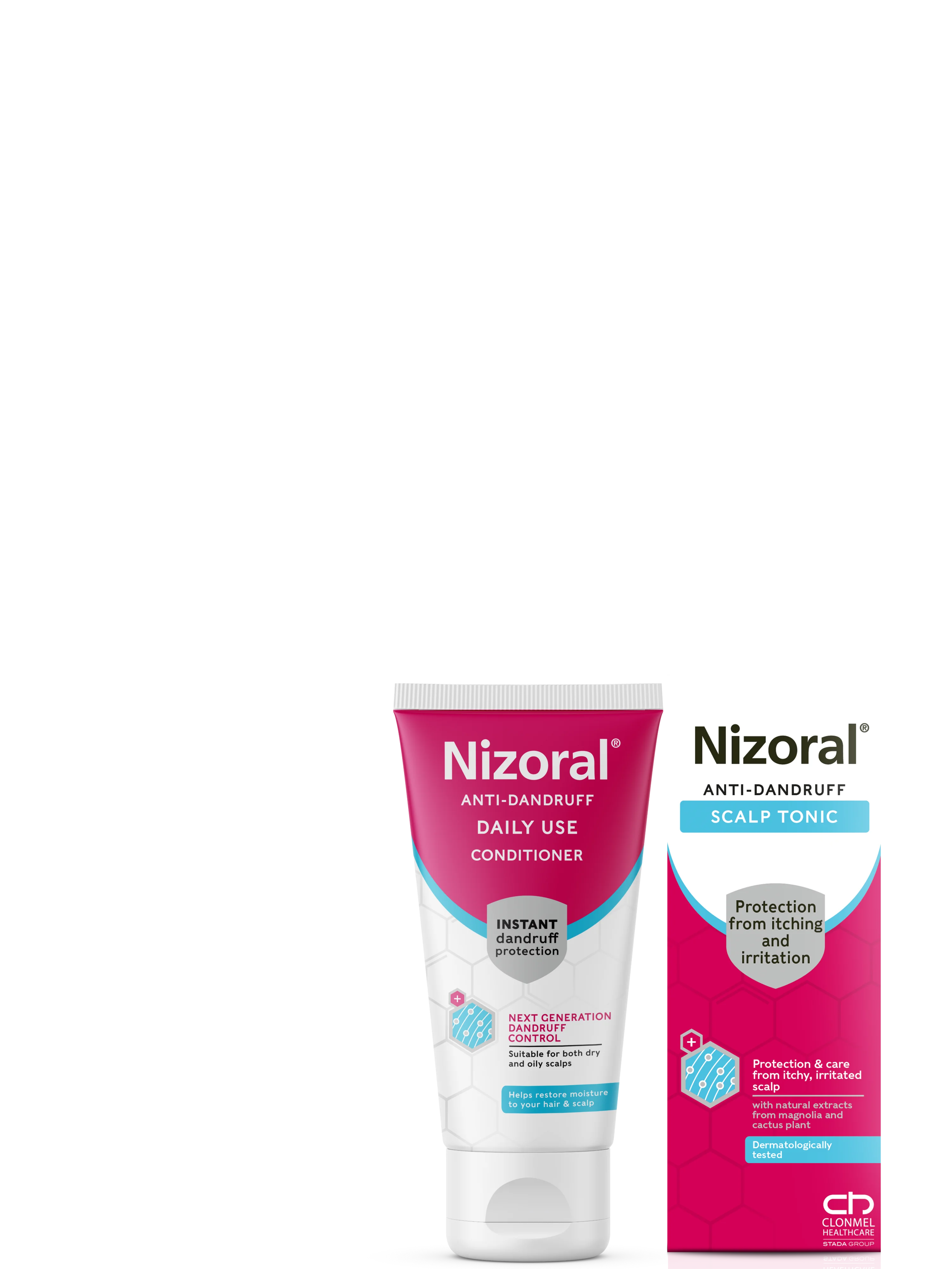 Rebalance and soothe your scalp with Nizoral® Care Scalp Tonic & Nizoral® Daily Care Conditioner, leaving it refreshed and moisturized. Always read the label.