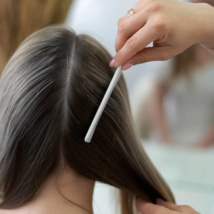 Female lice stick their eggs onto individual strands of hair near the scalp. When the next generation of lice hatches, their empty egg shells (nits) are left behind. These brownish-grey eggshells may look like dandruff.
