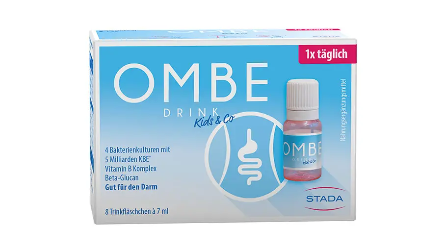 Abgestimmt auf den jungen Darm ergänzen Sie mit jeder Anwendung mindestens 5 Milliarden Milchsäurebakterien, den Vitamin-B-Komplex und AGOS. OMBE Drink Kids & Co eignet sich für alle Altersklassen. Der besonders fruchtige Erdbeergeschmack macht OMBE Drink Kids & Co besonders beliebt bei Kindern.