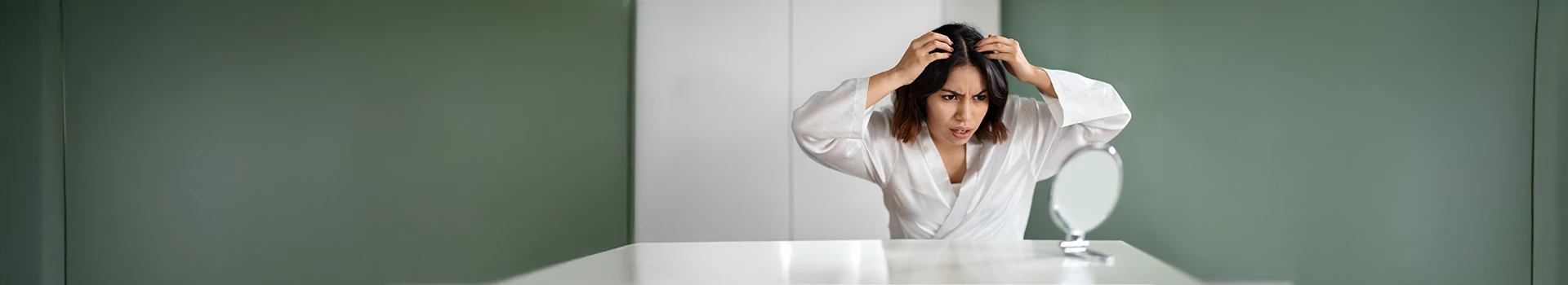 - Amincissement des cheveux : vous remarquez que votre raie s'élargit ou que votre queue de cheval semble plus fine.
