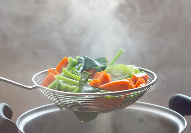 Wenn Sie Gemüse kochen, sollten Sie wenig Wasser verwenden und es nur bissfest kochen. Das Restwasser bringt einen tollen Geschmack für Saucen mit. Verwenden Sie es gerne weiter! Das Dünsten ist übrigens besonders schonend. Das fertige Essen sollten Sie nicht lange warmhalten, sondern lieber später wieder aufwärmen.