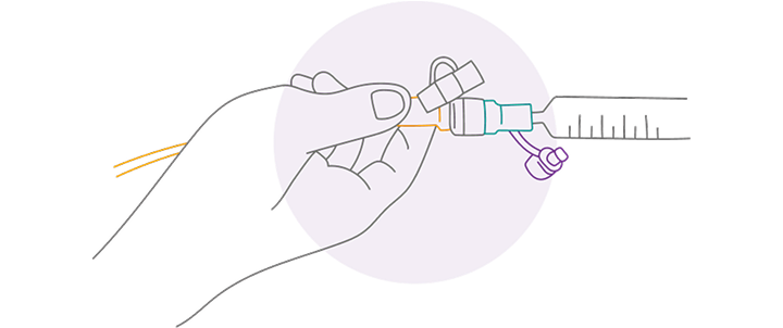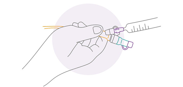 Spritze auf den intestinalen Anschluss der Sonde schrauben.