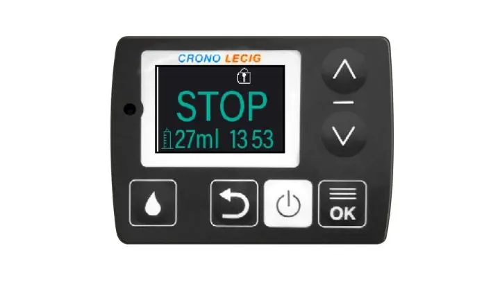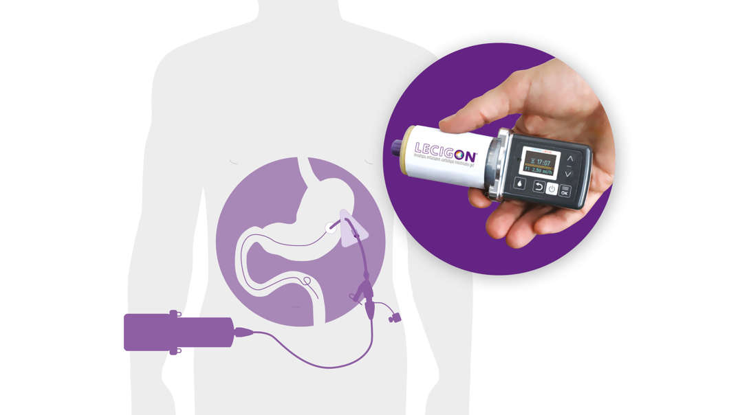 CRONO LECIG ist eine tragbare Infusionspumpe zur kontinuierlichen Verabreichung von LECIGON®, ein Medikament zur Behandlung der fortgeschrittenen Parkinson-Krankheit. Dabei wird das Medikament – ein Gel - durch die Pumpe über eine Sonde (künstlicher Zugang) direkt in den Darm abgegeben.