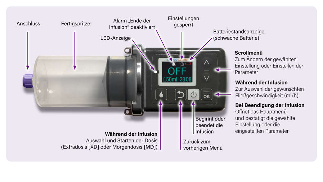 Das Vorbereiten einer Infusion kann durch Sie oder helfende Personen in Ihrem Umfeld eigenständig durchgeführt werden. Bitte führen Sie folgende Schritte durch: