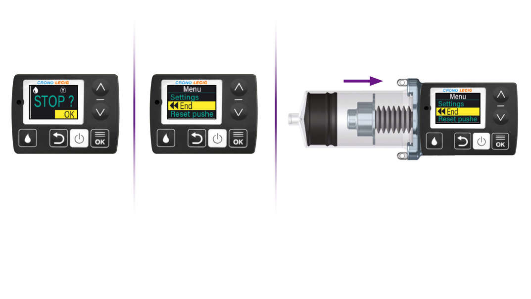 - Die Pumpe schaltet sich automatisch aus und ist für die nächste Infusion bereit