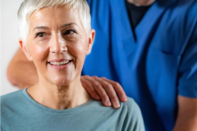 Patient:innen, die durch motorische Symptome im Alltag beeinträchtigt sind, sollen Physiotherapie erhalten. Das kann helfen, Beweglichkeit und Selbstständigkeit länger zu bewahren.