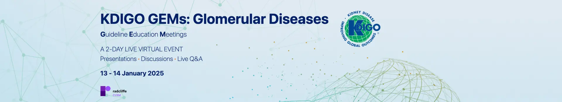 KDIGO GEMs (Guideline Education Meetings) is a new programme offering virtual education on the latest KDIGO Guidelines and evidence-based updates. These interactive events are designed to empower healthcare professionals with the knowledge and tools needed to understand and apply KDIGO recommendations in real-world clinical practice.