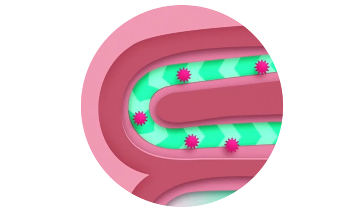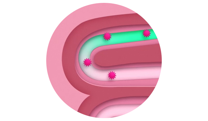 At the same time, RACIBUM® does not interfere with intestinal function, so diarrhoea-causing substances can pass freely.