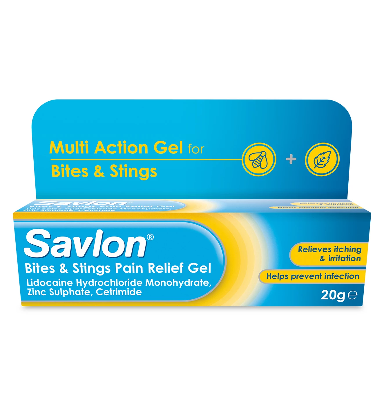 - Savlon Bites & Stings Pain Relief Gel can be applied to soothe and relieve the pain and itching caused by insect bites and stings.