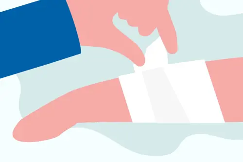 Loosely bandage the burn with a sterile, non-stick dressing to reduce the pain and protect any blisters formed. You can also use a clean single layer of cling film to cover the limb affected for burns and scalds.