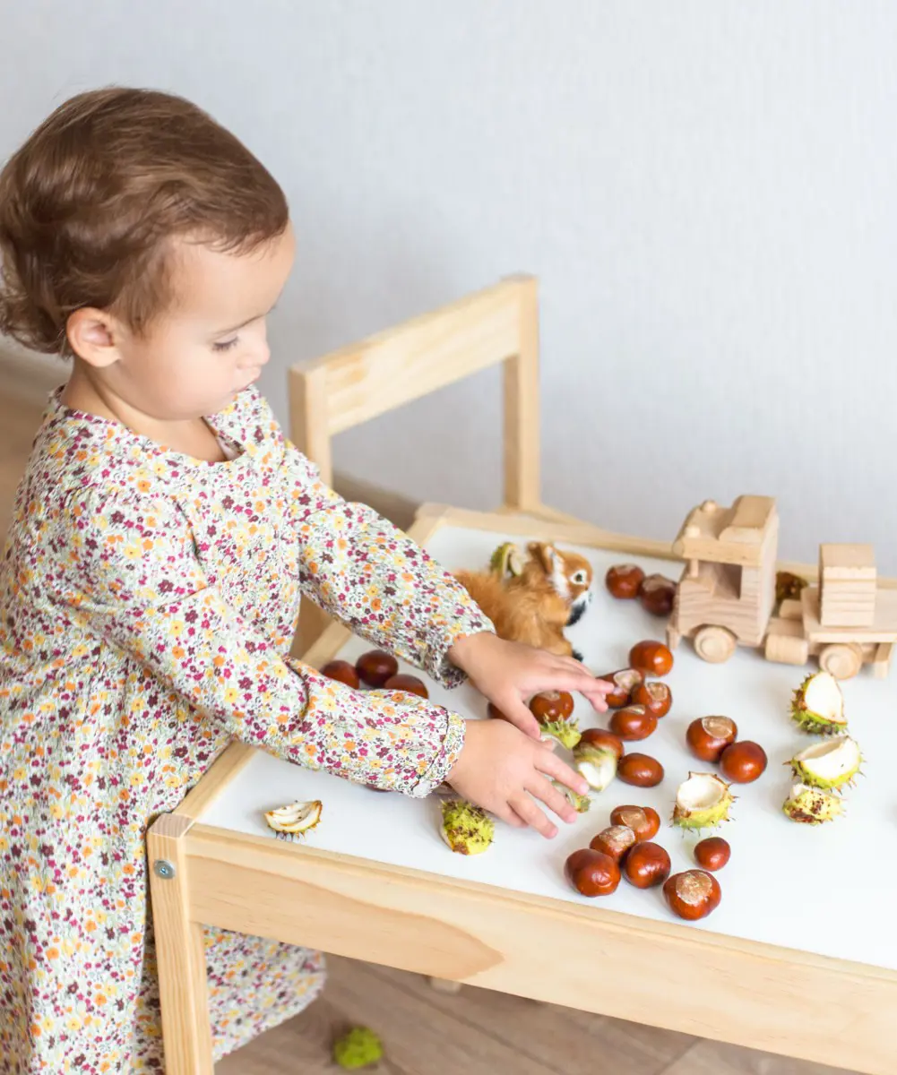 Step 3: If you’re creating a collage, start by sifting through your seasonal supplies to decide which you will be painting and decorating or which you will be printing with. Alternatively, you can paint and decorate your leaves or conkers with whichever colours and materials you like - maybe even include glitter or googley eyes to bring them to life!