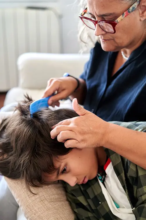 Om hoofdluis te diagnosticeren, controleer je grondig het haar, vooral achter de oren en in de nek. Kijk uit naar bewegende luizen of grijswitte puntjes, de neten, die kunnen uitgroeien tot luizen.