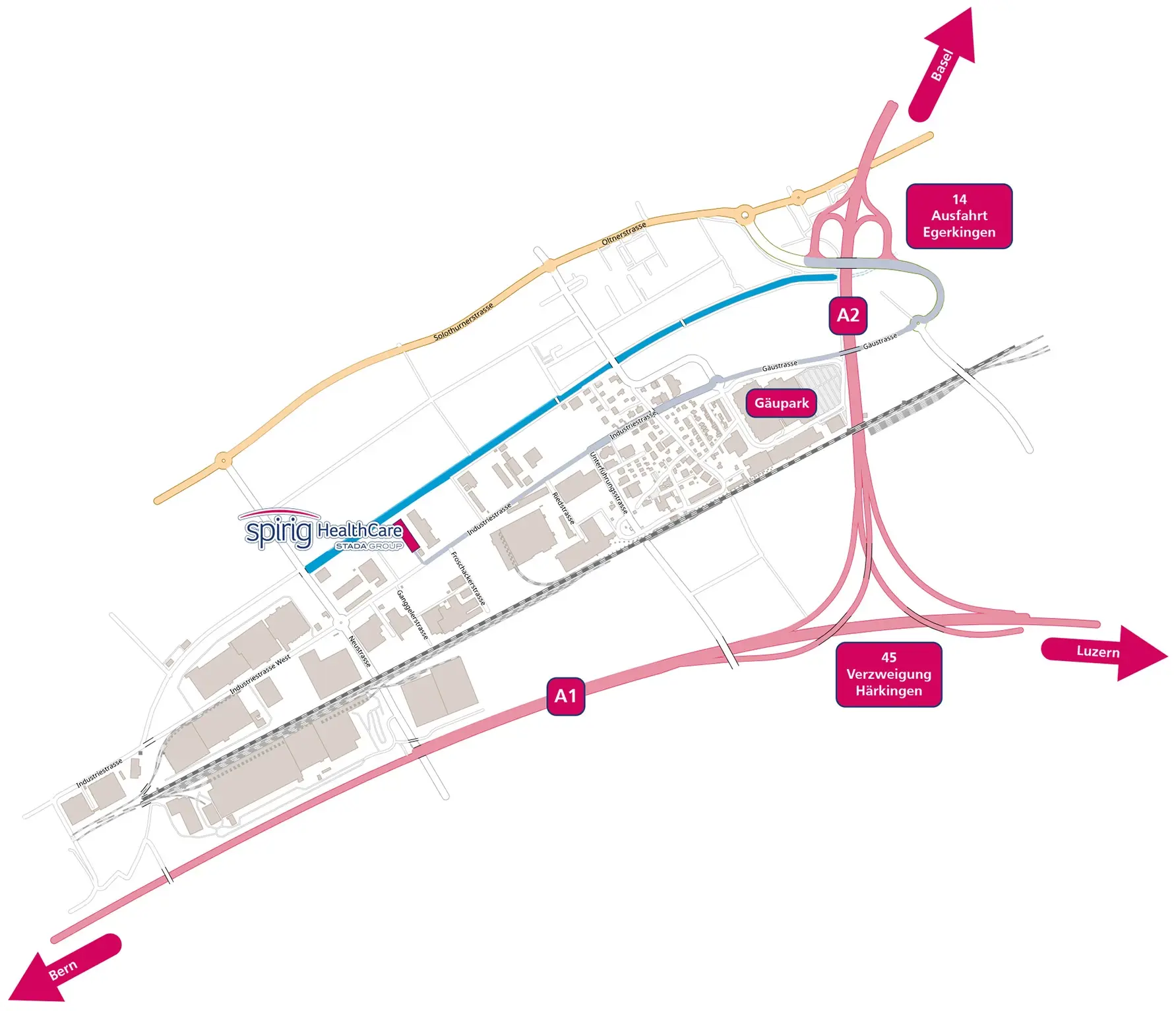 Die Spirig HealthCare AG befindet sich im 5. Stock und ist mit dem Lift (mittig im Parkhaus) erreichbar.
