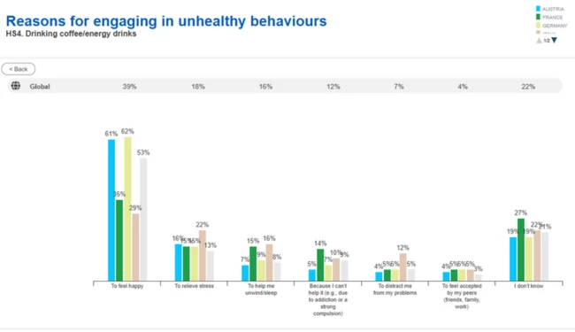 En Suisse aussi, le plaisir joue un rôle important dans le bien-être : 53 % des personnes interrogées déclarent consommer du café ou des boissons énergisantes pour se remonter le moral.