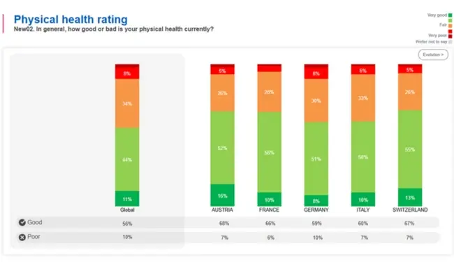 L’étude met en lumière les évolutions actuelles dans des domaines clés tels que la santé mentale, les soins personnels, la prévention, le mode de vie, ainsi que la confiance dans le système de santé. Les comparaisons entre pays et les analyses de tendances offrent un aperçu précieux des similitudes et des différences à travers l’Europe et montrent comment la perception de la santé et son importance évoluent pour les citoyens.