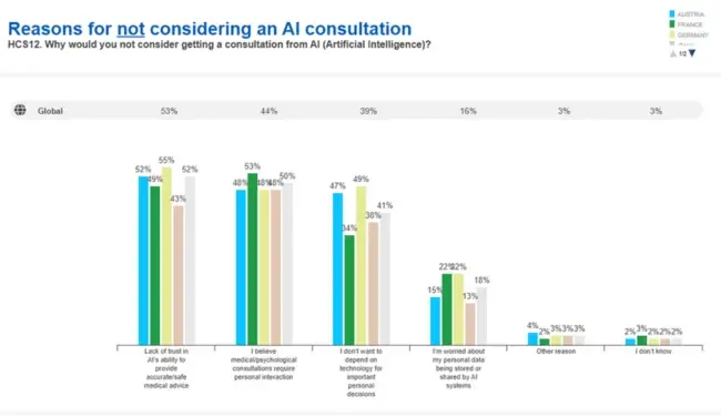 Le souhait d’une interaction personnelle constitue une motivation essentielle : pour 50 % des sondés, elle est déterminante pour instaurer la confiance et garantir la qualité des soins médicaux.
