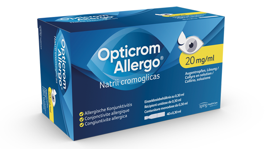 Opticrom Allergo® est un collyre contenu dans un récipient unidose qui contient comme principe actif le cromoglycate de sodium. Il est utilisé pour soulager et traiter différentes formes de conjonctivites allergiques, telles que la conjonctivite du rhume des foins qui apparaît au printemps.