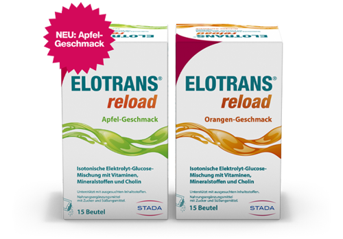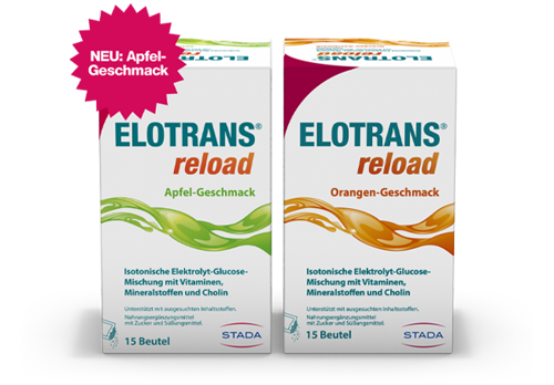 ELOTRANS®reload enthält eine isotonische Elektrolyt-Glucose-Mischung mit Vitaminen, Mineralstoffen und Cholin.