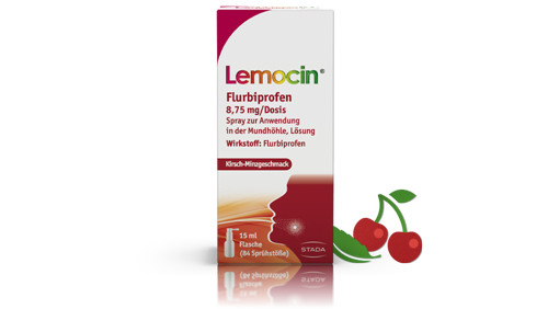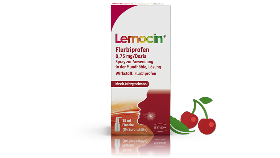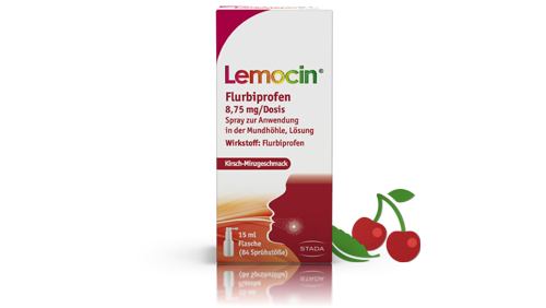 Lemocin® Flurbiprofen Spray hilft bei Halsschmerzen rasch und langanhaltend. Der Spray mit Kirsch-Minzgeschmack ist praktisch in der Anwendung und für Erwachsene ab 18 Jahren geeignet.