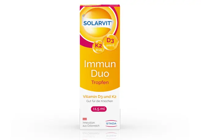 Ca-D3-STADA FilmtablettenCa-D3-STADA Uno FilmtablettenCa-D3-STADA plus K2 FilmtablettenCetebe ABWEHR fitCetebe ABWEHR plusCetebe Retard 500 mgSOLARVIT® Immun Tabletten D3SOLARVIT® Immun Tropfen D3SOLARVIT® Immun forte Tabletten D3SOLARVIT® Immun Duo Tropfen D3 K2SOLARVIT® Immun Duo forte Tab. D3 K2SOLARVIT® Osteo Filmtab. D3 K2 CaSOLARVIT® Active Filmtab. D3 K2 MgSOLARVIT® Kids & Co Jelly Beans