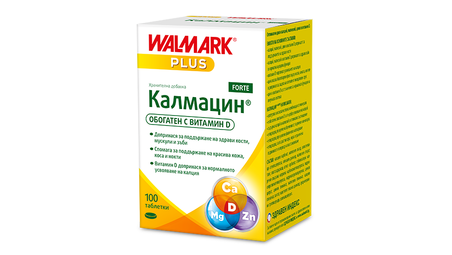 Калмацин Форте е хранителна добавка, висококачествен източник на важните минерали калций, цинк и магнезий, обогатена с витамин D, за по-добро усвояване на калция и поддържане на равновесие на минералите в организма. Преди употреба прочетете упътването.