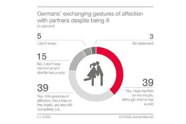 Geradezu heldenhaft präsentiert sich fast die Hälfte der Bundesbürger, wenn es darum geht dem Liebsten oder der Liebsten eine Erkältung zu ersparen. 55 Prozent der Männer würden ihrer besseren Hälfte eine Erkältung abnehmen, wenn sie könnten. Bei den Frauen zeigen immerhin noch 40 Prozent die gleiche Opferbereitschaft. Auch wenn es um Zärtlichkeiten geht, lassen sich viele der Befragten von einer Erkältung nicht abhalten: Knapp 40 Prozent küssen ihre Liebsten trotzdem auf den Mund und weitere 39 Prozent trauen sich, kleinere Zärtlichkeiten wie Wangenküsse zuzulassen. Im STADA Gesundheitsreport finden Sie zahlreiche weitere spannende Ergebnisse.