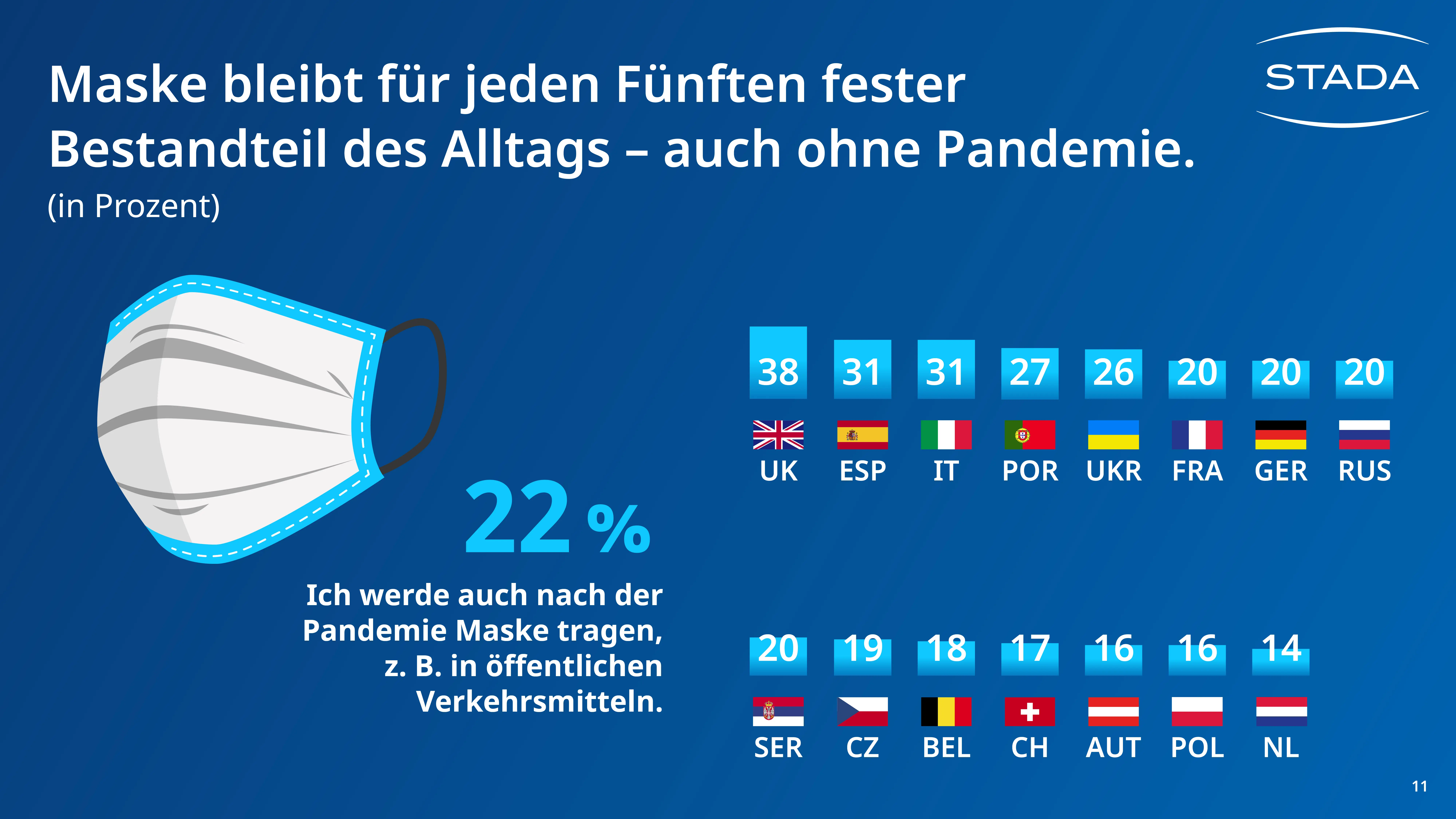 - 22 % Prozent der Europäer haben vor, auch nach Corona einen Mund-Nasen-Schutz zu tragen