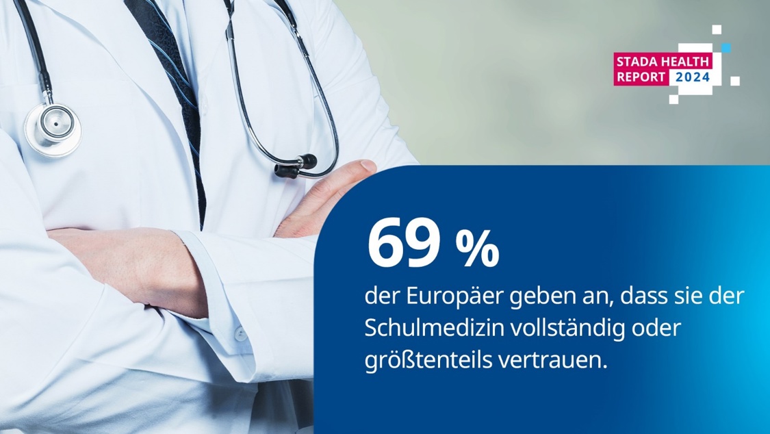 Obwohl die Unzufriedenheit mit der Gesundheitsversorgung spürbar ist, hat das Vertrauen in die Schulmedizin deutlich zugenommen: Im Jahr 2024 vertrauen 69 Prozent der Europäer der Schulmedizin vollständig oder größtenteils, im Jahr 2022 waren es nur 62 Prozent.