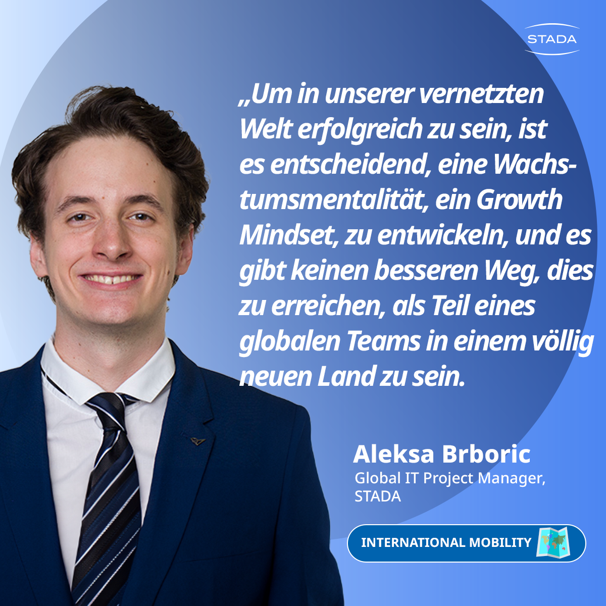 Es bietet einzigartige kulturelle Einblicke, bringt Sie aus Ihrer Komfortzone heraus, um Ihre Fähigkeiten in einem neuen Umfeld zu erweitern, und eröffnet neue Karrieremöglichkeiten. Auf organisatorischer Ebene stärkt die internationale Mobilität die STADA-Werte "One STADA" und "Entrepreneurship": Durch die Nutzung unterschiedlicher Perspektiven und Best Practices über Ländergrenzen hinweg werden eine übergreifende Zusammenarbeit und kontinuierliches Lernen zu einem wesentlichen Bestandteil der Wachstumskultur von STADA.