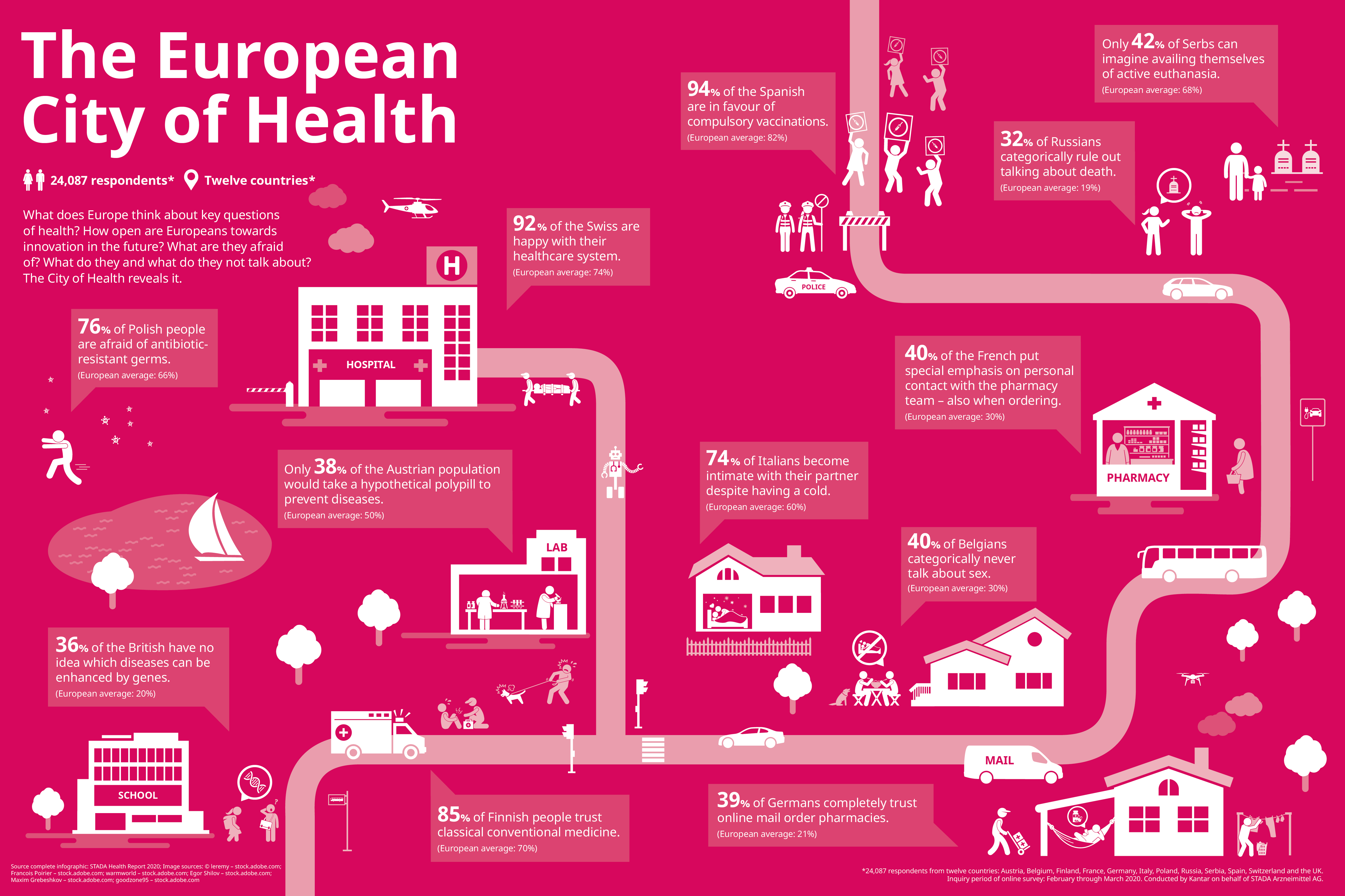 Representative online study by Kantar on behalf of STADA. Timeframe: February through March 2020. Sample: Around 2,000 respondents each from Austria, Belgium, Germany, Finland, France, Italy, Poland, Russia, Serbia, Spain, Switzerland and the United Kingdom.