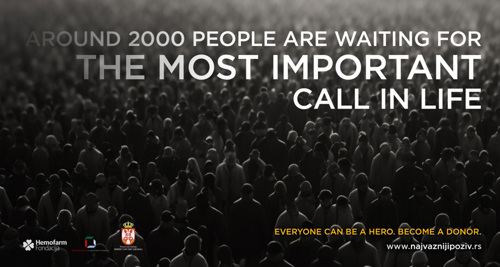 During the campaign, 91 billboards were visible in 16 cities of Serbia with the message ’I'm waiting’. About 2000 people are waiting for the most important call in life. ’Anyone can be a hero. Become a donor.’ TVC ’The most important call in life’ was broadcasted on national and cable televisions, in waiting rooms Primary Healthcare Centers and taxi vehicles. The website ’The most important call in life’ consists of 14 life stories of patients and 9 confessions of physicians, myths and truths about organ donation and transplantation, frequently asked questions and answers. The social media profiles were created on Facebook and Instagram with a high rate of positive response of the audience from the beginning of the campaign. National Donor Day, which was established by Hemofarm Foundation in 2016, was marked on June 6 with guest appearances on various TV and Radio programs with a national and cable frequency.