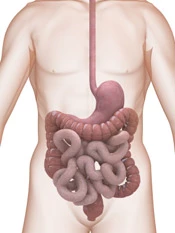 Der menschliche Darm besteht aus dem Dünndarm – dieser beginnt direkt am Magen – und dem so genannten Dickdarm. Insgesamt ist der Darm ca. 5 Meter lang.