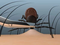 Zecken mit einer Pinzette entfernen. Weit vorne am Kopf ansetzen, möglichst nahe an der Haut des Betroffenen. Die Zecke mit leichten Hin- und Herbewegungen herausziehen oder -drehen, möglichst ohne den Kopf abzureißen.