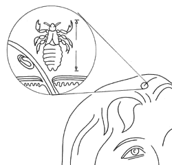 Die Kopflaus ist 2-3mm groß und sitzt am häufigsten an den Haaren, hinter den Ohren oder an der Kopfrückseite. Ihre Farbe passt sich der Haarfarbe an. Die kleinen durchsichtig-weißen Eier klebt sie am Haaransatz an.