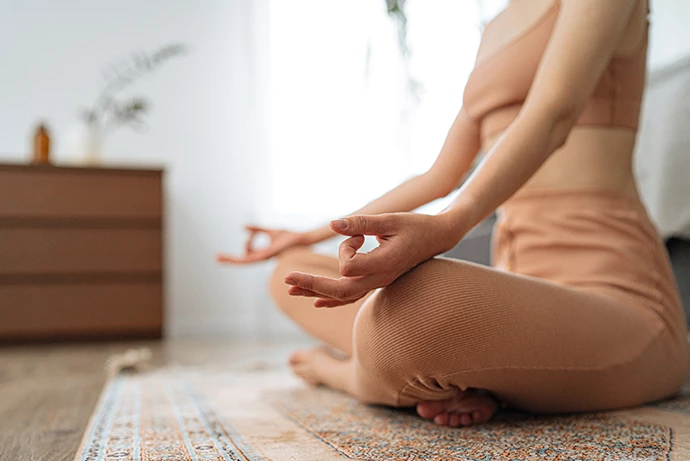Meditieren Sie zwischendurch fünf Minuten. Setzen Sie sich bequem hin oder bleiben Sie stehen, schließen Sie die Augen und atmen Sie bewusst ein und aus. Versuchen Sie, sich ganz auf das Atmen zu konzentrieren, stellen Sie sich eine Landschaft vor. Vielleicht eine Sommerwiese mit Apfelbäumen. Eine Landschaft, in der Sie sich wohlfühlen.
