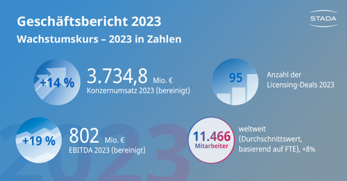 - STADA CEO Peter Goldschmidt: „Durch unsere starke Performance wuchsen wir auch 2023 schneller als unsere größten Wettbewerber. Basis für unseren Erfolg ist unsere unternehmerisch geprägte Kultur. Diverse Neueinführungen aus unserer bestens gefüllten Pipeline gepaart mit einem starken organischen Wachstum sind der beste Beweis dafür."