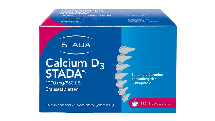 Wirkstoffe: Calciumcarbonat / Colecalciferol (Vitamin D3). Zum Ausgleich eines gleichzeitigen Calcium- und Vitamin D-Mangels bei älteren Menschen. Zur Unterstützung einer spezifischen Osteoporose-Behandlung bei Patienten mit nachgewiesenem oder hohem Risiko eines gleichzeitigen Calcium- und Vitamin D-Mangels. Hinweis: Enthält Lactose, Natrium, hydriertes Sojaöl und Sucrose.