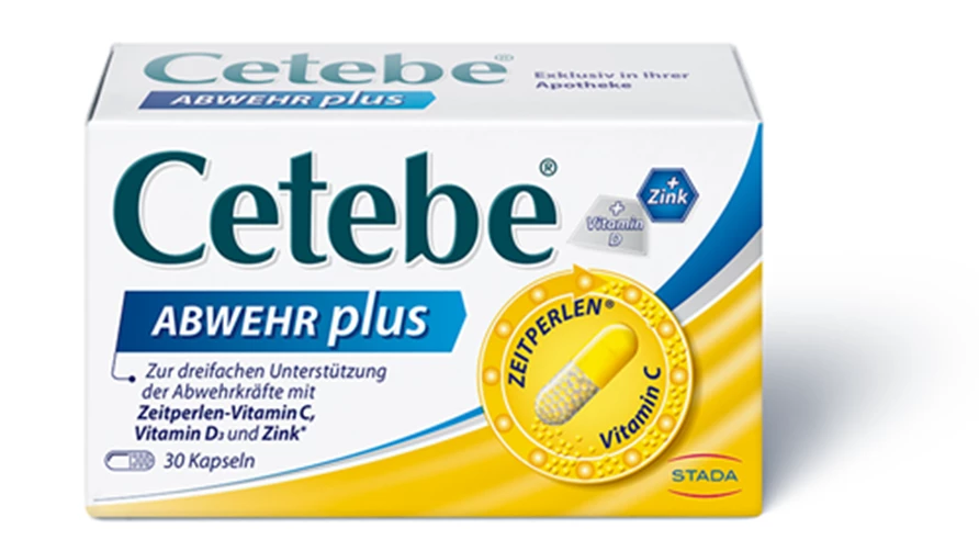 Cetebe® ABWEHR plus enthält 300 mg ZEITPERLEN® Vitamin C, 10 μg Vitamin D3 und 10 mg Zink.