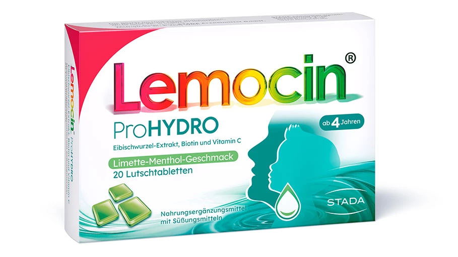 Lemocin® ProHYDRO Halstabletten zum Lutschen sind zuckerfrei und gut verträglich. Sie sind bereits für Kinder ab 4 Jahren geeignet, sobald diese kontrolliert lutschen können. Die einzigartige Zusammensetzung des Nahrungsergänzungsmittels* aus Eibischwurzelextrakt, Biotin und Vitamin C beruhigt gereizte Schleimhäute, trägt zu deren normalen Funktion bei und unterstützt das Immunsystem. Das Aroma von Limette und kühlendem Menthol schmeckt besonders frisch. Setzen Sie auf Lemocin® Lutschtabletten für die ganze Familie.