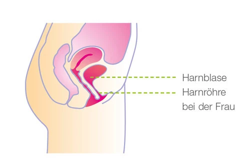Die Harnröhre der Frau hat eine Länge von etwa 4cm. Sie ist wesentlich kürzer als beim Mann und verläuft gerade. Bakterien können deshalb leichter in die Blase eindringen und eine Blasen-untzündung auslösen.