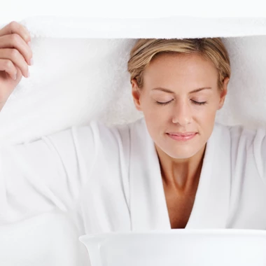 Inhalieren, drei bis sechs Mal am Tag zehn Minuten lang, z. B. 10 g Salz auf 1 Liter Wasser. Beugen Sie sich mit einem Handtuch über dem Kopf darüber und atmen Sie langsam durch die Nase ein und den Mund wieder aus!