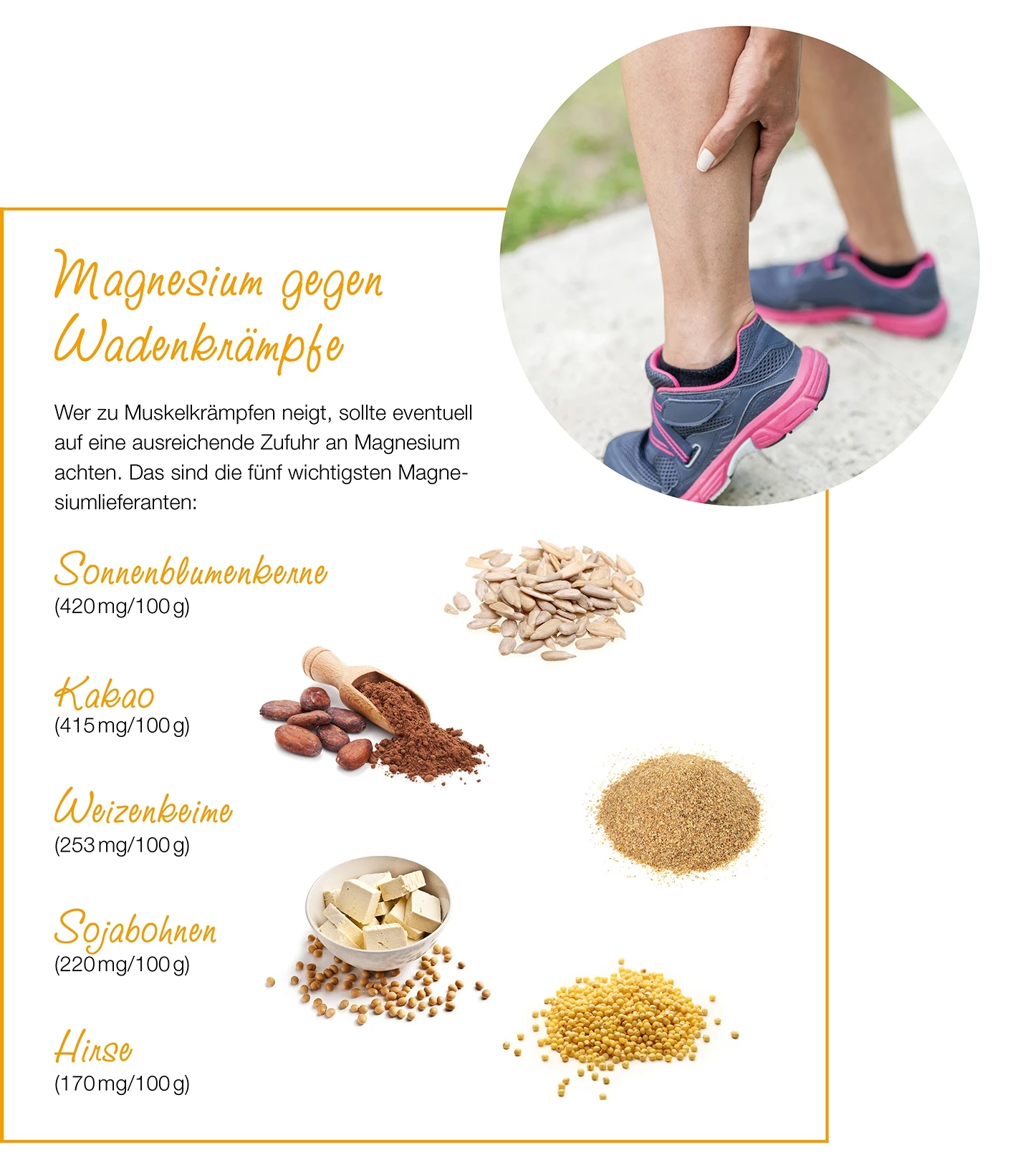 Die Überlastung der Muskeln macht sich aber oft auch erst nach der sportlichen Aktivität bemerkbar – im berühmten Muskelkrampf. Besonders häufig betroffen von solchen unwillkürlichen Krämpfen sind Ober- und Unterschenkel. Auslöser für Muskelkrämpfe kann ein hoher Flüssigkeitsverlust sein – etwa wenn man während des Sports nicht ausreichend Flüssigkeit und Elektrolyte tankt. Aber auch Infektionen, niedrige Außentemperaturen, Krampfadern, zu enge Strümpfe bzw. Schuhe oder ein unzureichender Trainingszustand können Krämpfe begünstigen.