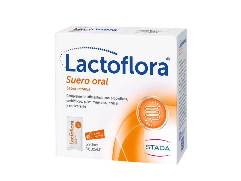 - Lactoflora® Suero Oral, ahora también con sabor naranja, facilita la rehidratación y contribuye al equilibrio de la microbiota intestinal gracias a su fórmula con probióticos, prebióticos y sales minerales.