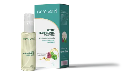 - El nuevo Trofolastín Aceite Reafirmante Toque Seco contribuye a redefinir la piel, devolver la hidratación y recuperar la firmeza, contrarrestando así los efectos visibles del envejecimiento cutáneo.