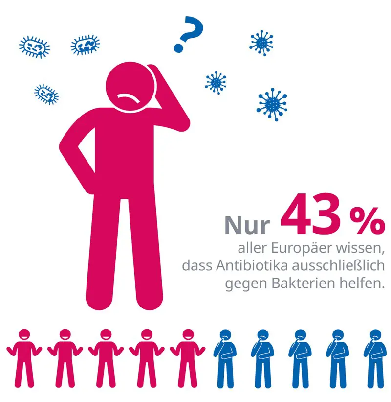 - Nur 43 Prozent der Europäer wissen, dass Antibiotika ausschließlich gegen Bakterien helfen