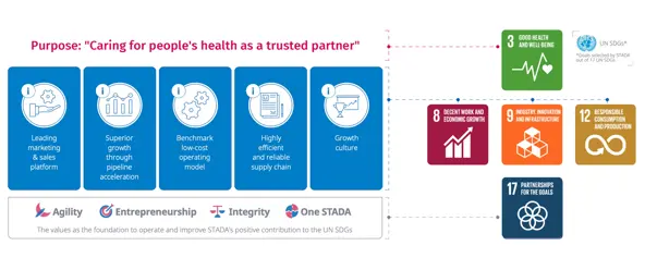 Die strategischen Prioritäten von STADA sind das Ergebnis von nachhaltigem Denken und der Auftrag, „sich als verlässlicher Partner um die Gesundheit der Menschen zu kümmern“, bildet die Grundlage für eine kontinuierliche Weiterentwicklung des Unternehmens. STADAs Werte und Auftrag mit dem Konzept der Nachhaltigkeit zu verbinden ist unser Rahmen für Sustainability.