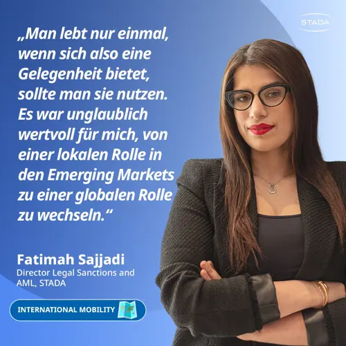 Es bietet einzigartige kulturelle Einblicke, bringt Sie aus Ihrer Komfortzone heraus, um Ihre Fähigkeiten in einem neuen Umfeld zu erweitern, und eröffnet neue Karrieremöglichkeiten. Auf organisatorischer Ebene stärkt die internationale Mobilität die STADA-Werte "One STADA" und "Entrepreneurship": Durch die Nutzung unterschiedlicher Perspektiven und Best Practices über Ländergrenzen hinweg werden eine übergreifende Zusammenarbeit und kontinuierliches Lernen zu einem wesentlichen Bestandteil der Wachstumskultur von STADA.