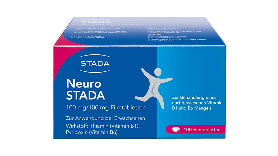 Der individuelle Vitamin-B-Bedarf hängt unter anderem vom Ernährungsverhalten, aber auch von der jeweiligen körperlichen Beanspruchung und der Stoffwechselaktivität des einzelnen Menschen ab. Ein Mangel an Vitamin B1 und Vitamin B6 kann zu Mangelerscheinungen führen. Neuro STADA kann das Nervengewebe bei Vitamin B Mangel durch ausreichende Versorgung von Vitamin B1 und B6 stärken.