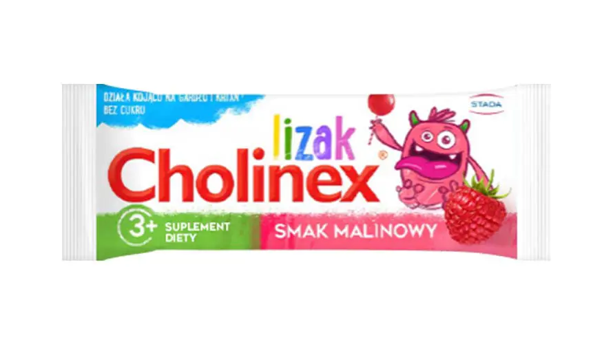 Lizak Cholinex to suplement diety o pysznym malinowym smaku. Przeznaczony jest dla dzieci w wieku powyżej 3. roku życia, aby wesprzeć podrażnione gardło.